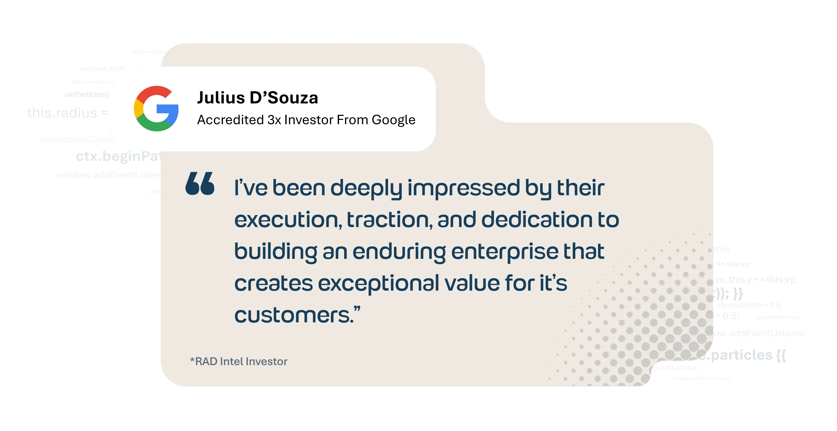 Backed by 15,000+ investors, including operators from Google, Meta, and Amazon, and multiple Fidelity funds, RAD Intel was also selected by the Adobe Design Fund.